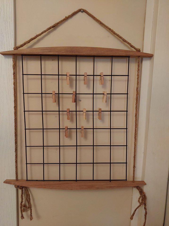 44X44 cm ebatında. Evinize Sıcak & Bohem Dokunuş.. Ahşap detaylı, jüt halatlı tel ızgara duvar panosu. Fotoğraflar, notlar, kartpostallar ve küçük hatıralar için hem dekoratif hem kullanışlı. Salon, yatak odası, çalışma alanı için çok şık Kendiniz için ya da hediye olarak da harika bir seçim.