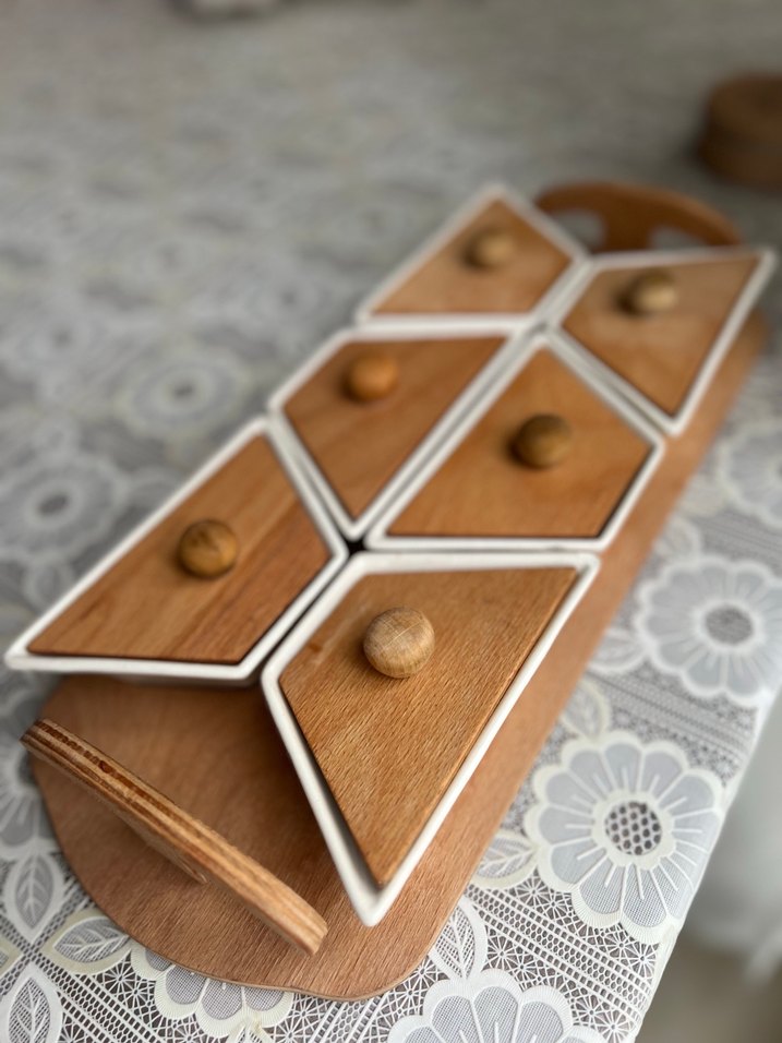 40 cm, 15 cm ebatlarında. Ahşap standı ve kapakları olan kahvaltılık. Sunumlarınız için farklı bir seçenek olabilir.