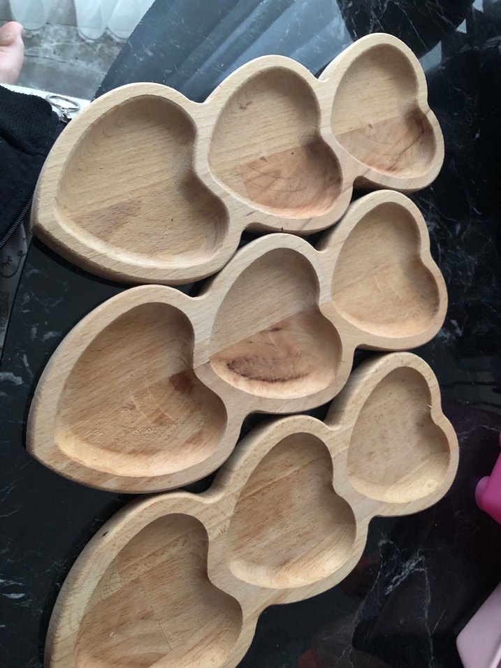 Ahşap kalp desenli çerezlik seti 3 lü