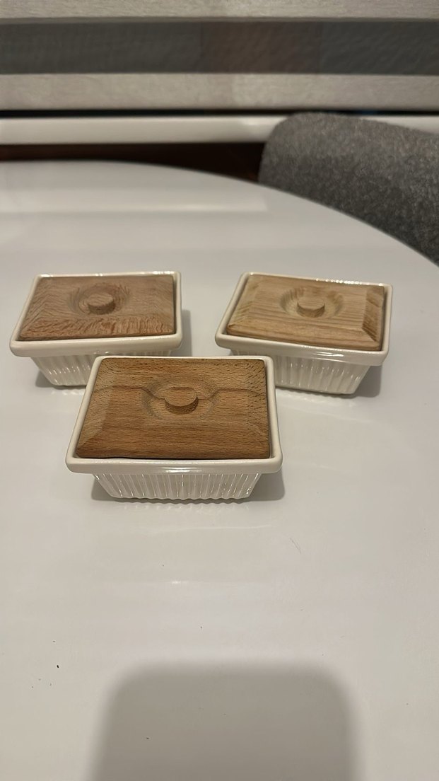 Ahşap Kapaklı Beyaz Saklama Kapları