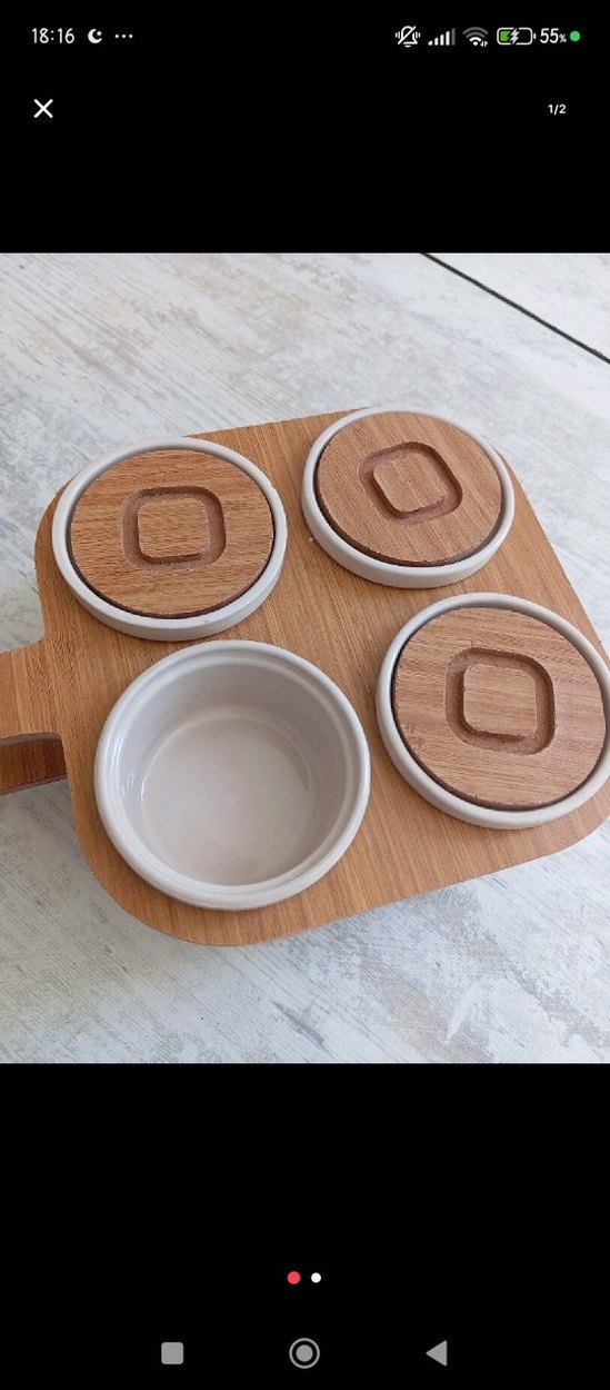 Ahşap Kapaklı Beyaz Seramik kahvaltilik
