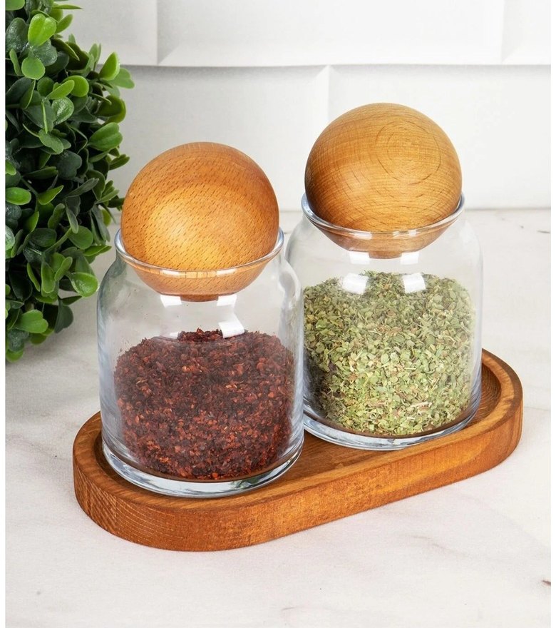 Ahşap Kapaklı Cam Baharatlık Seti