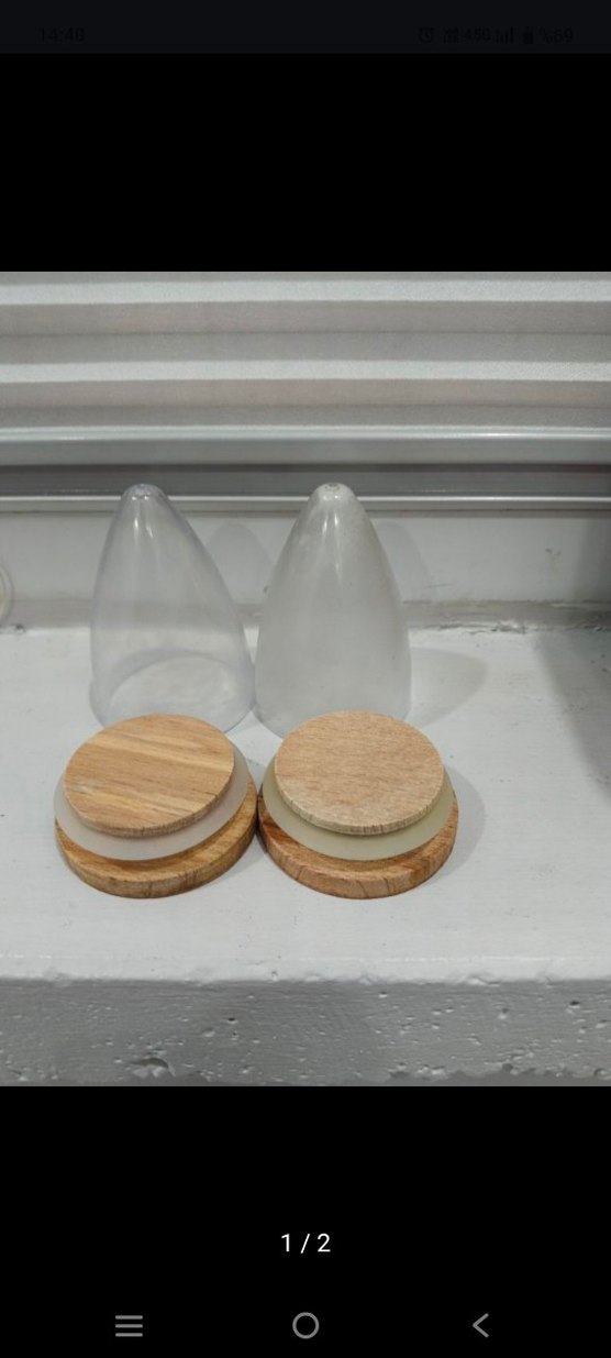 Ahşap Kapaklı Şeffaf Tuzluk ve Biberlik