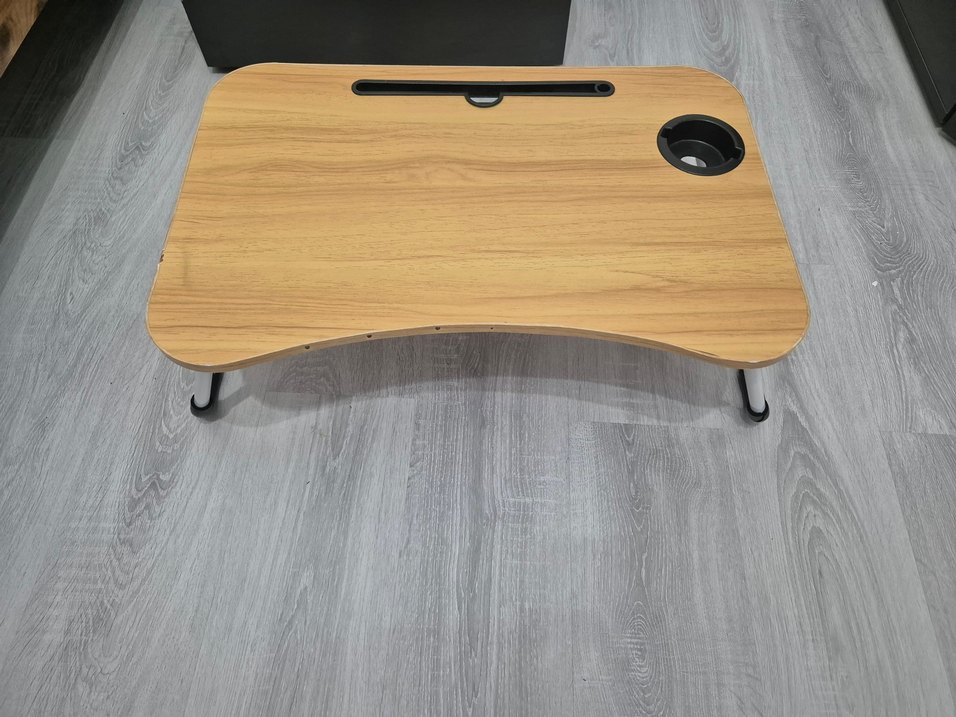 Rahat kullanım için bardak tutucu ve kalemlik yuvası bulunur. ️ahşap katlanabilir çalışma masası kahvaltı masası birkaç kez sadece kullandı oglum