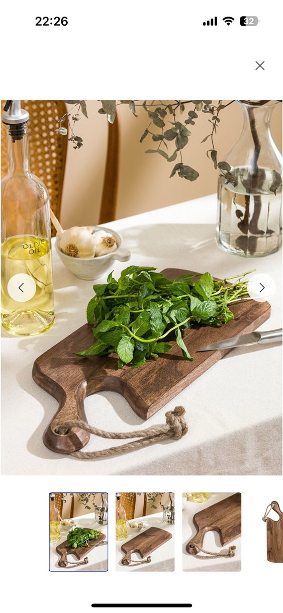 Saplı ve ipli ahşap kesme tahtası, mutfakta kullanıma uygun dayanıklı ve rustik tasarım sunar. 44cm