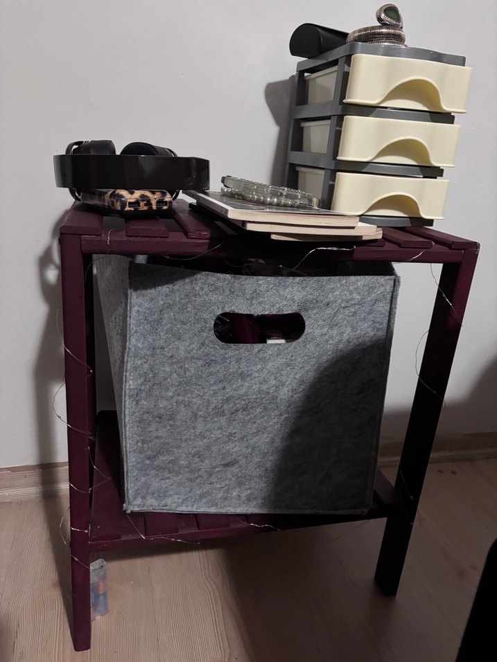 Gri kumaş kutusu ve küçük çekmeceleriyle dolap için düzenleyici. Evde kullanıma uygun, kompakt ve pratik. ️