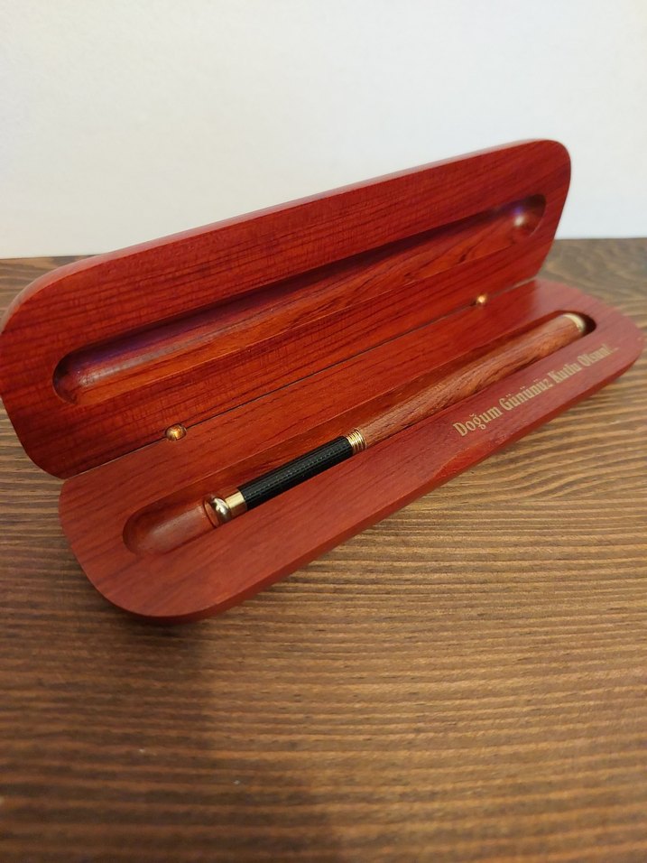 ✒️Kendi Ahşap Özel Kutusunda içi bölmeli ahşap dolma kalemdir.Mavi renk yazmaktadır.Herhangi bir kusuru yoktur.Kutusunun iç kısmında Doğum Gününüz Kutlu Olsun yazılı tebrik mesajı bulunmaktadır.Özel günler için ve kalem koleksiyonu yapanlar için güzel bir hediye seçeneğidir.Diğer ilânlarımı incelemeyi unutmayınız.