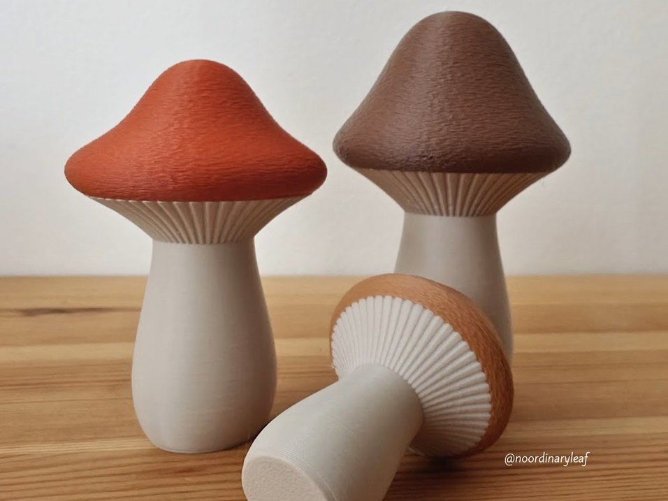 Hafif kahverengi tonlarında, doğal görünümlü, mantar figürler seti.