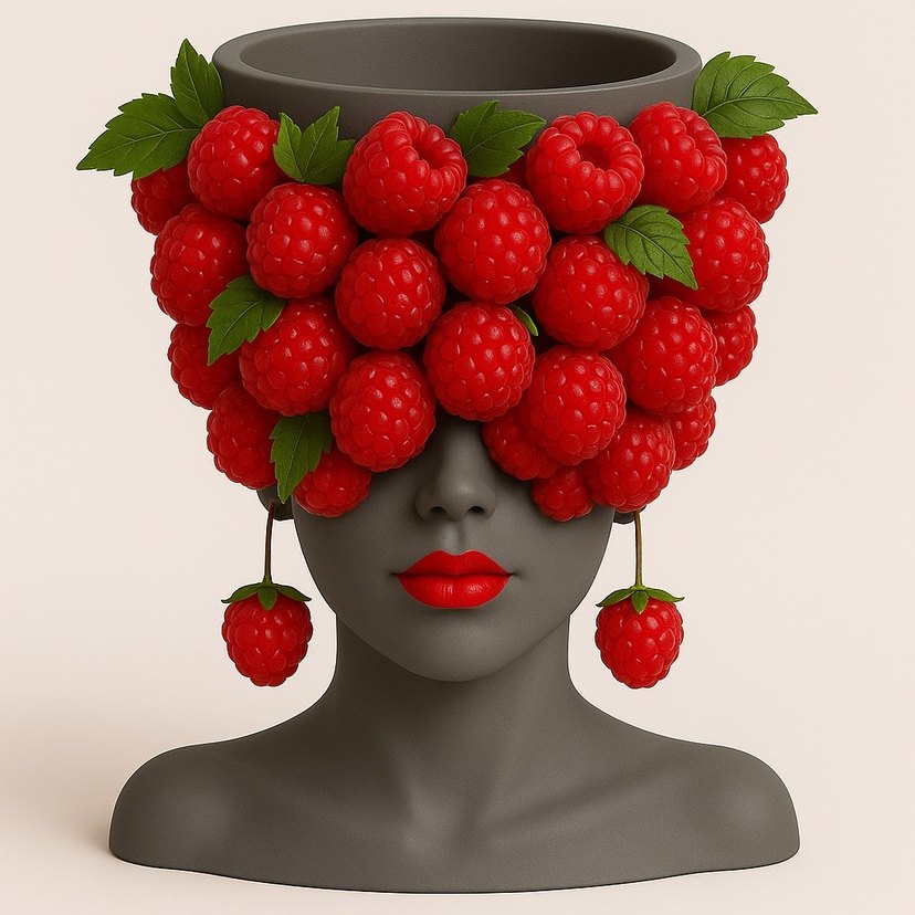Ahşap, mavi gri renkte, yüz şeklinde ve detaylı yüz hatlarına sahip, mat görünümlü saksı. Üst kısmı boş ve bitki ekimi için uygun.