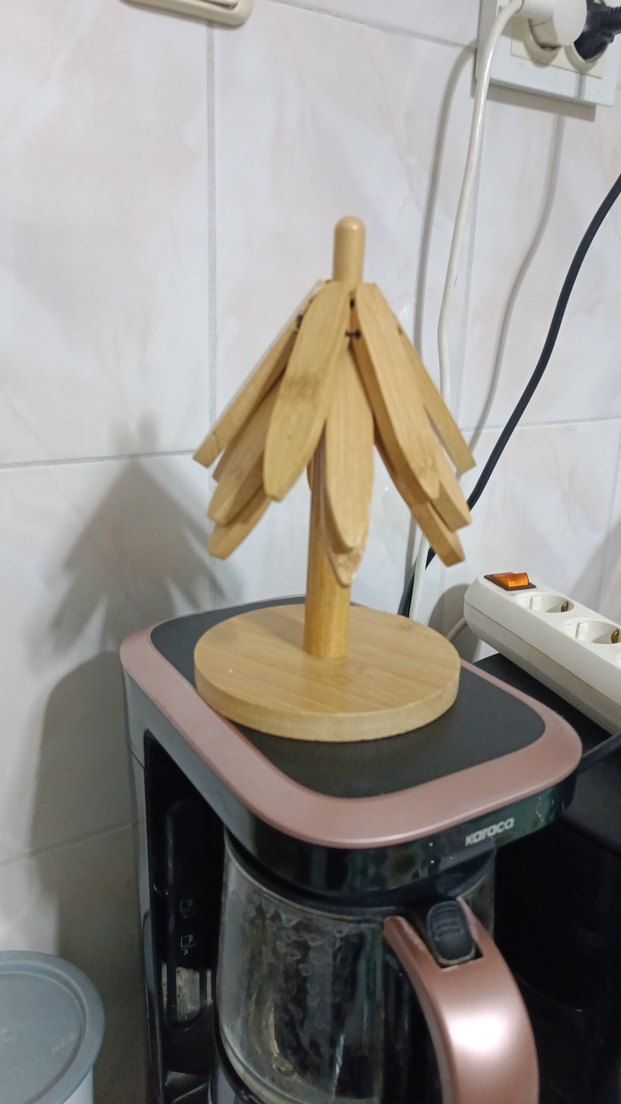 Bej renkte, açık tonlu ahşaptan yapılmış küçük dekoratif ağaç figürüdü nihale
