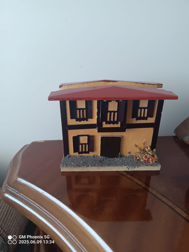 Kahverengi ahşap model ev kiti, koyu kırmızı çatılı ve detaylı pencereli iki katlıdır. Önünde küçük bir bahçe alanı vardır. Peçetelik