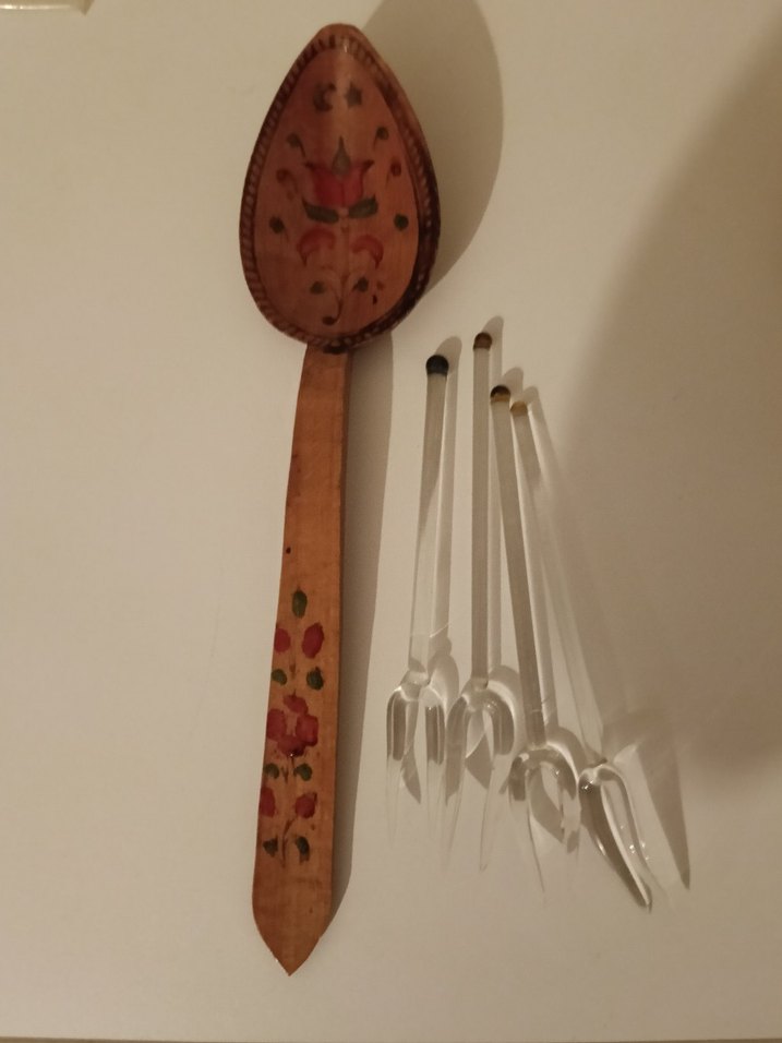 Ahşap Oyma Kaşık ve Cam Çatal Seti