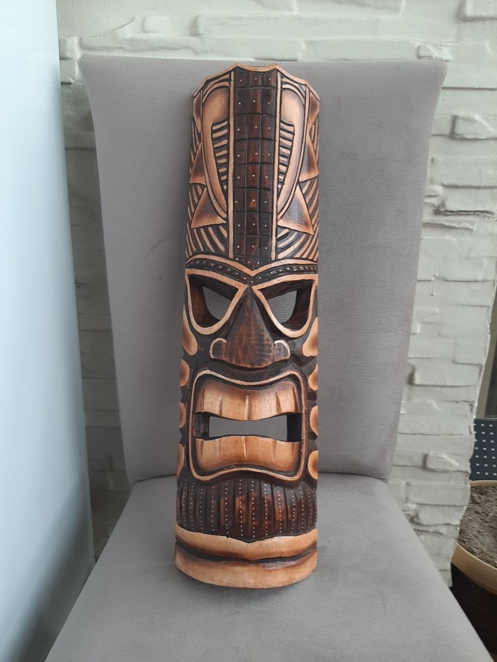 Ahşap MASK el oyması ve boyaması tik ağacı kolleksiyonluk. 14x50cm ölçüsünde
