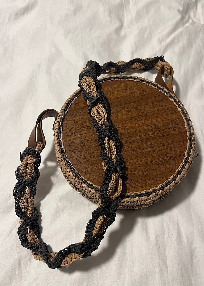 Yeni yapılmıştır iki taraf ahşap plaka ortası ve sapı kağıt iple örülmüştür fermuarlıdır
