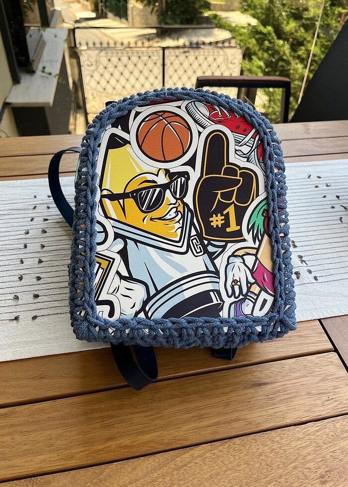 Yeni yapılmıştır iki taraf ahşap plaka ortası makrome iple örülmüştür fermuarlıdır sapı suni deridir