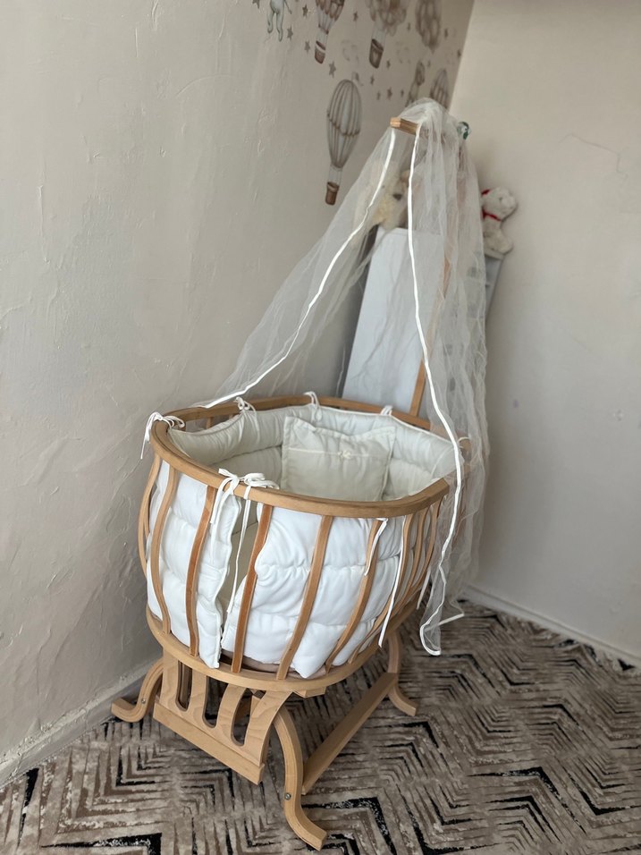 Ahşap çerçeveli, beyaz dolgulu ve ince tül perdelik bebek beşiği, rahat bir uyku alanı sunar Bebeklerimize hiç kullanılmadı tertemiz olarak gönderiyorum ebebek fiyatı çok yüksek ben çok uygunu veriyorum almak isteyen mesaj atabilir. (ADANA İÇİ ELDEN TESLİM )
