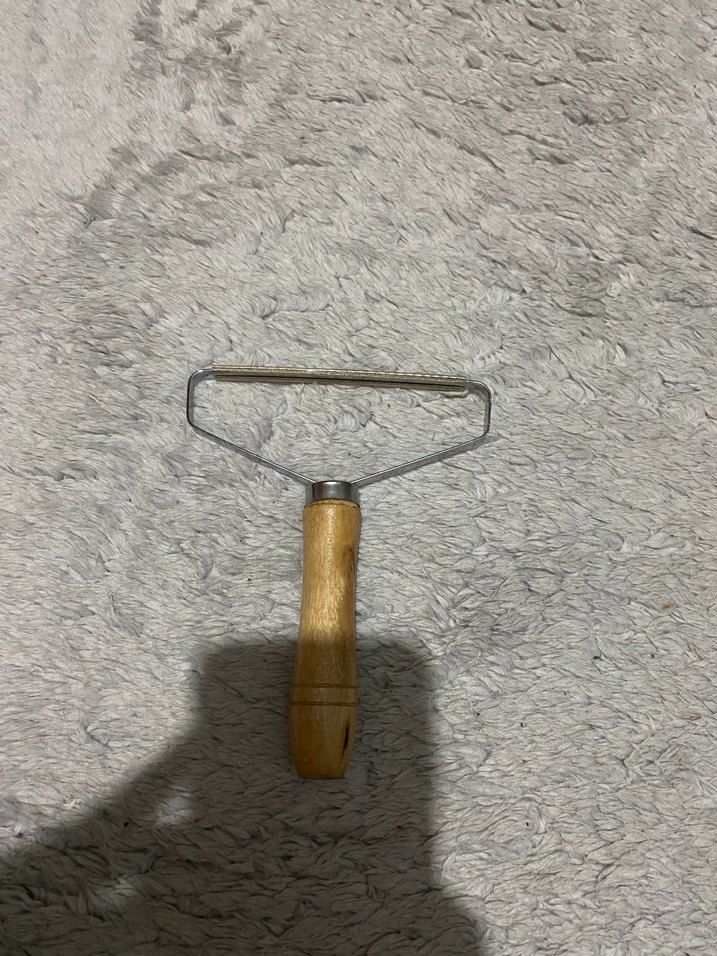 Ahşap saplı ve gri metal çerçeveli tıraş aleti, kolay tutuş ve etkili tıraş sağlar.