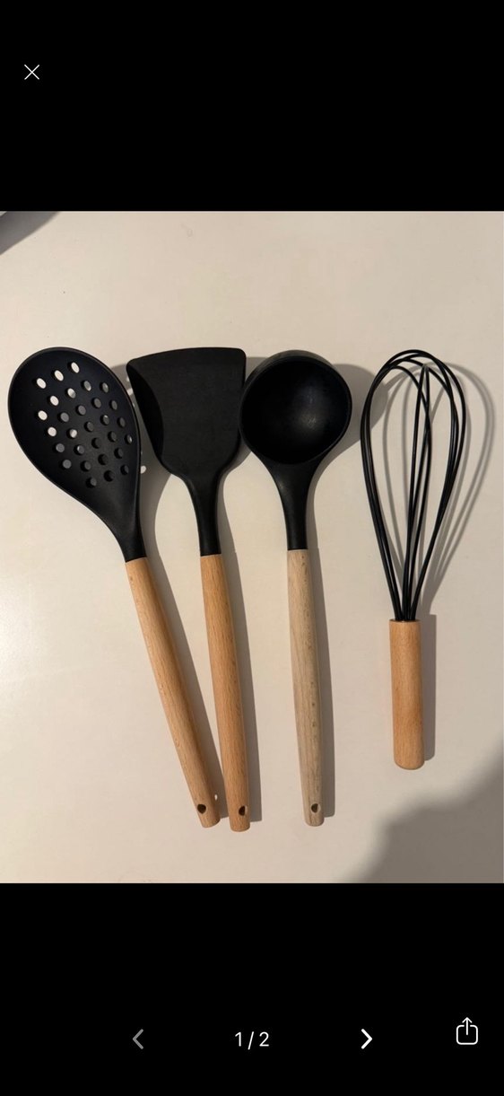 Ahşap Saplı Siyah Mutfak Gereçleri Seti