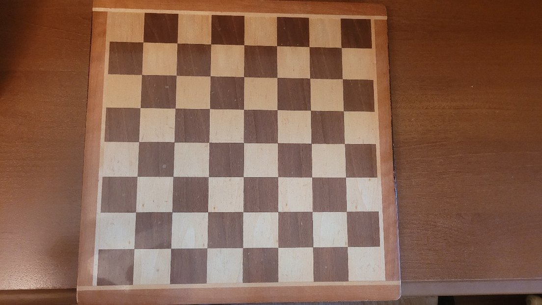 Klasik kareli tasarıma sahip koyu kahverengi ahşap satranç tahtası, ahşap çerçeve ile çevrilidir. ♟️sifir gibidir. 39*39 ebatlarindadir