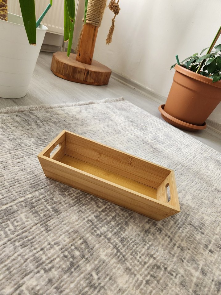 Ahşap sepet, sıfır üründür, görselde ölçüleri var.