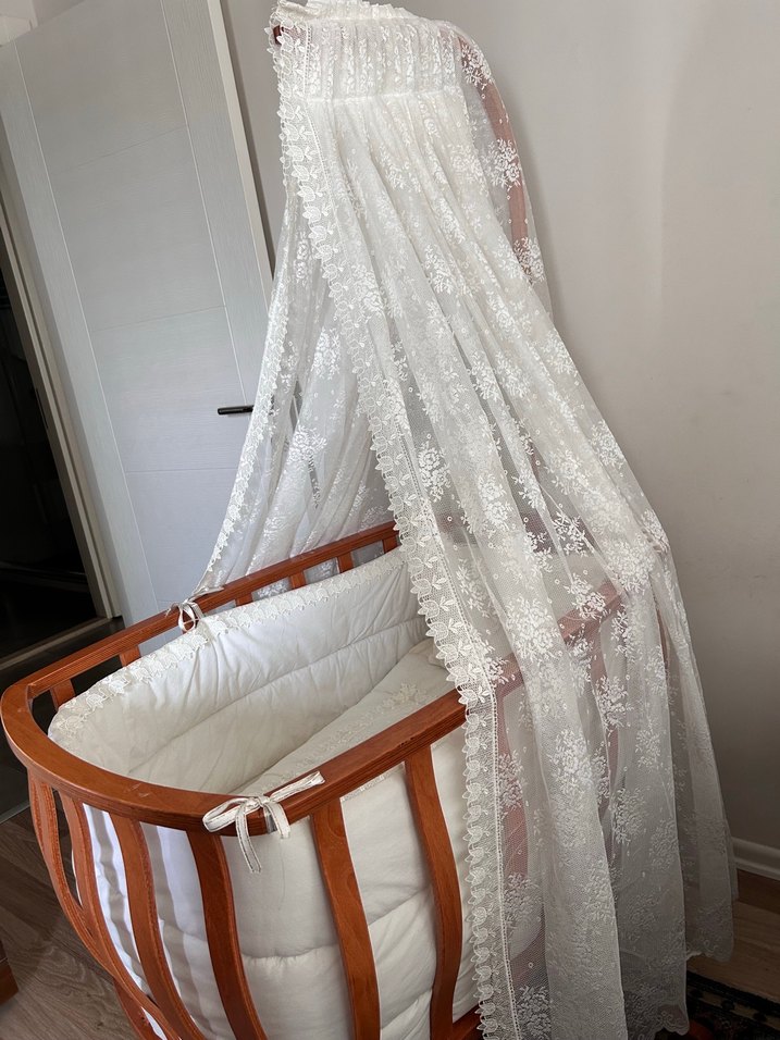 2 bebeğimde de kullandım çok sağlam bir ürün çiziği deformesi yoktur salalnabilir özelliği mevcuttur içinde yün yatağı bulunuyor ben yeni doğduğu zamanlarda babynestle kullandım içerisine çok rahat sığıyor takı yastığı örtüsü ve tülünü özel yaptırmıştım yanında emzirme minderi ve yastğı da hediyemdir. odadan odaya çok rahat taşınabiliyor markasını bilmiyorum ama çok önce salih bebeden sipariş üzerine tekstillerini yaptırmıştım. hem oğlumda hem kızımda kullandım üstte oyuncak takılacak ahşapları da mevcut onları da vereceğim
