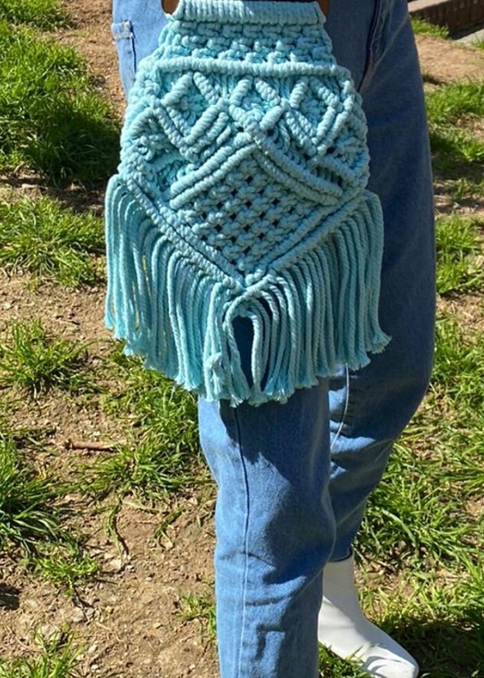 Makrome teknigi ile örülmüştur Mini boy el çantası