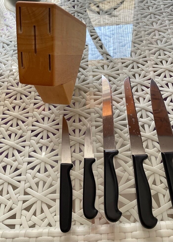 Ahşap standlı 5 değişik boy bıçak seti