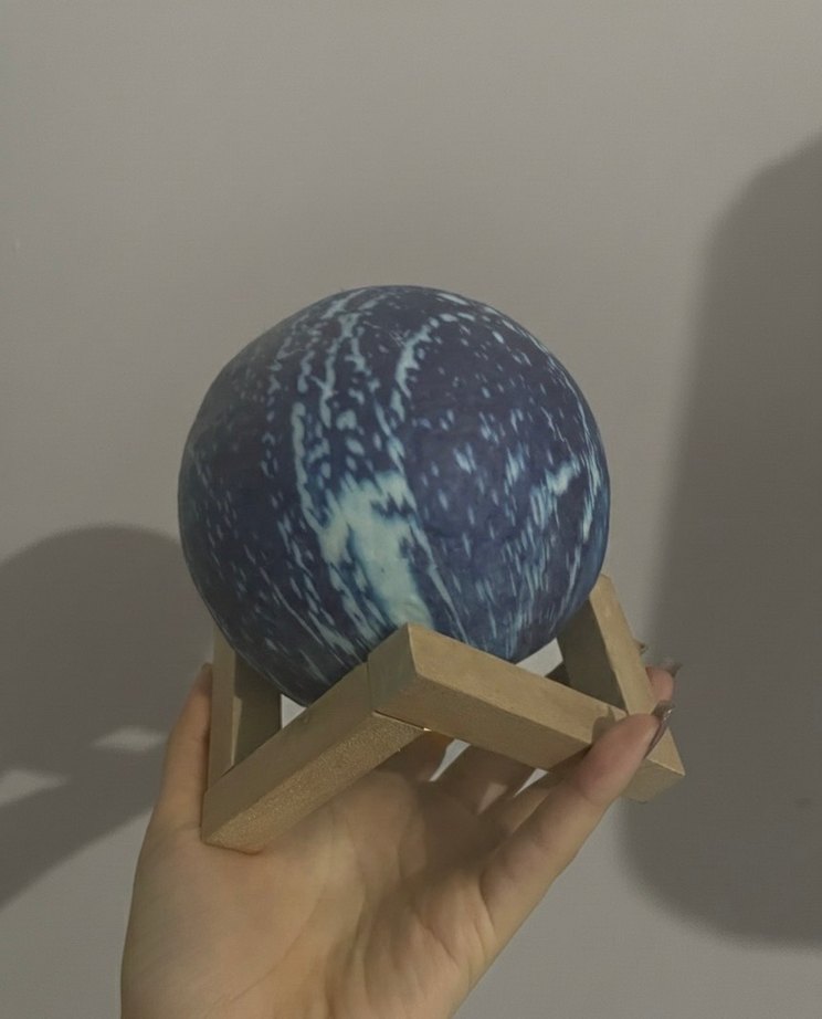 Ahşap Standlı Mavi Küre Lamba