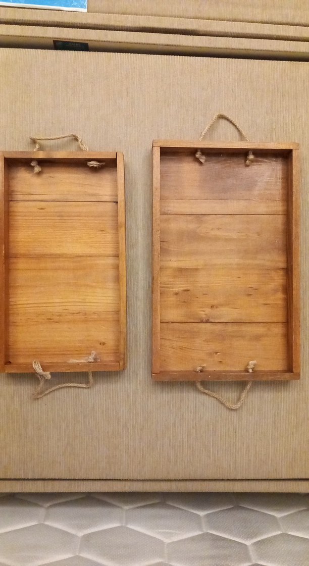 Ahşap tepsi sunumluk ipli kulplarla eşyaları düzenlemek için kullanışlıdır. Doğal görünümlü ve pratik saklama sağlar.