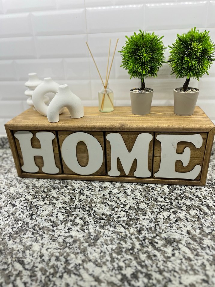 Ahşap Üzeri HOME Yazılı Dekoratif Obje