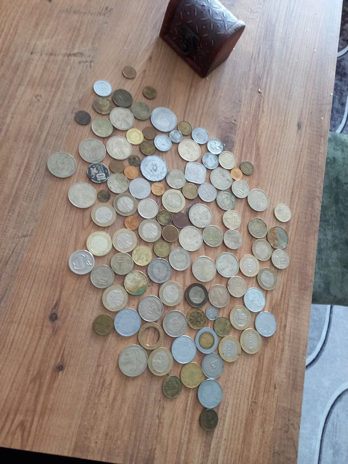 Ahşap Üzerinde Karışık Eski Paralar
