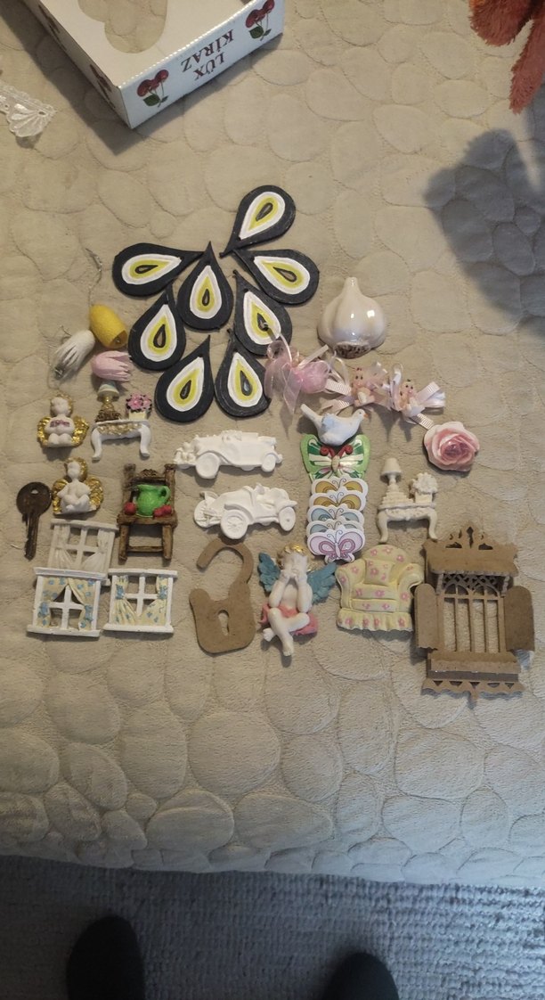 Mini mobilyalar, figürler ve çeşitli tasarımlarda renkli pastel ev dekorasyon objeleri seti. hobi için boyamaya uygun objeler