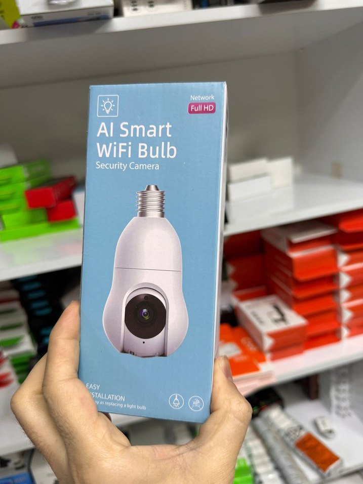 Beyaz AI akıllı WiFi ampul, tam HD güvenlik kamerası ile kolay kurulum sunar. Hem ampul hem de güvenlik cihazı olarak kullanılır.