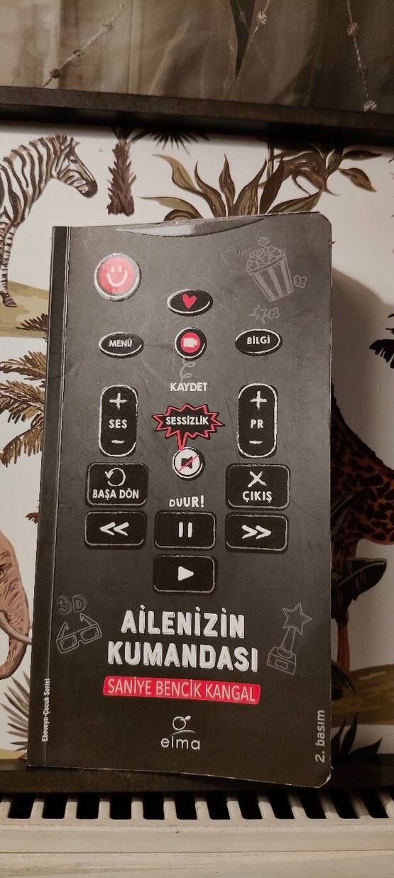 Saniye Bencik Kangal'ın 'Ailenizin Kumandası' kitabı, uzaktan kumanda şeklinde tasarlanmış kapakta aile ve iletişimle ilgili Türkçe butonlar içeriyor.