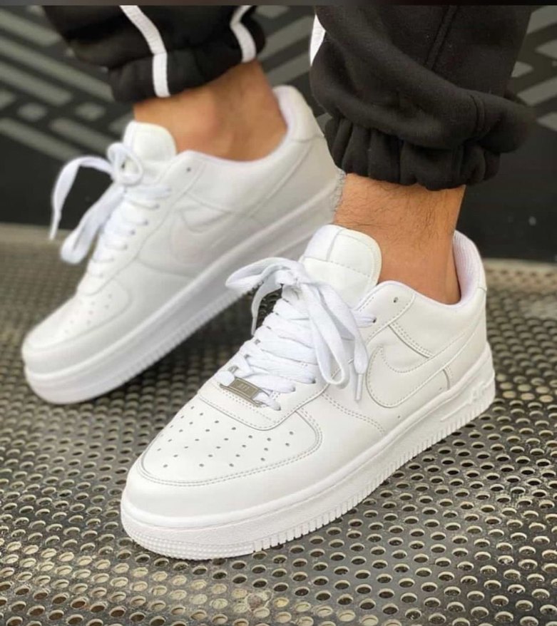Beyaz bağcıklı erkek spor ayakkabı, kauçuk tabanlı ve parlak görünümlü. Günlük sokak stiline uygun, trend athleisure tasarım.