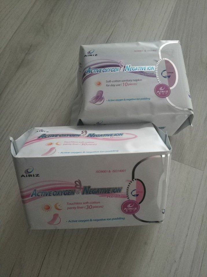 Airiz markasının pastel renklerde, elastik yapılı hamile pedi ve iç çamaşırı pedi seti, aktif oksijen ve negatif iyon teknolojisi içerir.