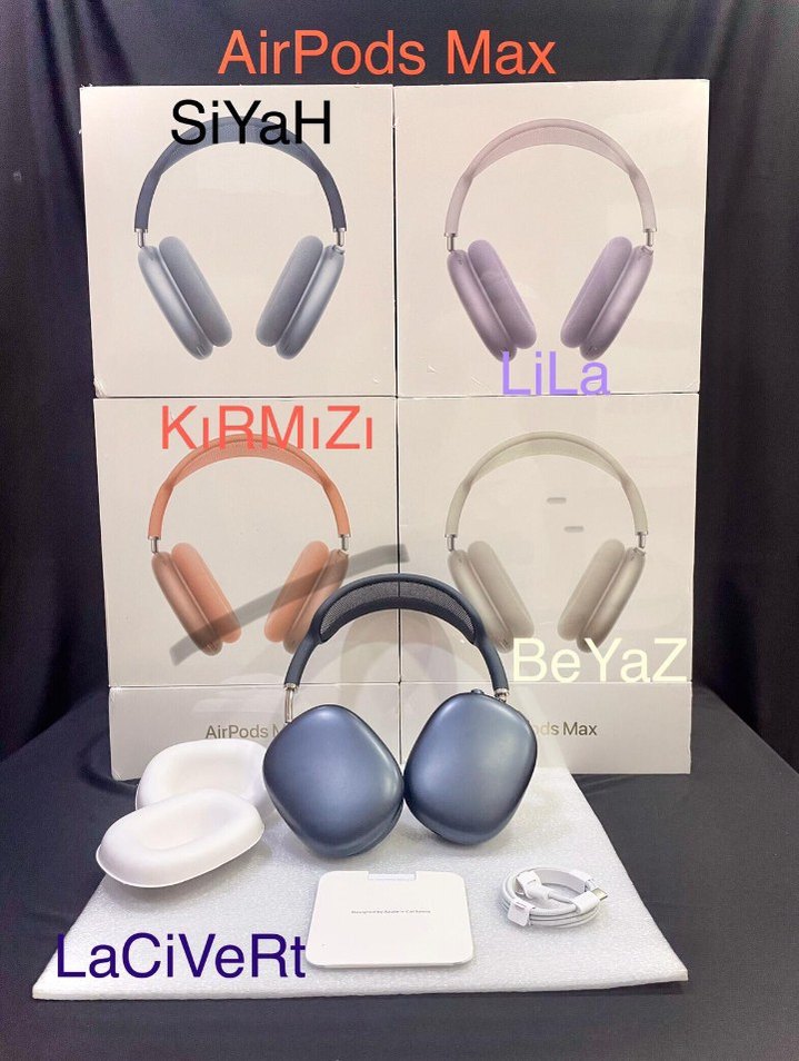 Gri AirPods Max kablosuz kulaklık, konforlu kulak üstü tasarımı ve yüksek kaliteli ses sunar. Şarj kablosu ve koruyucu kılıf dahildir.