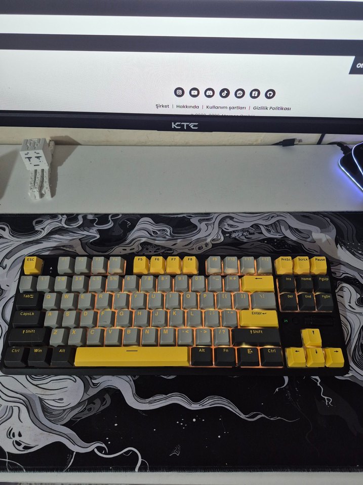 Üründe hiçbir sorun yok ürünü 30/11/2025 Tarihinde satın aldım fakat türkçe Q klavye istediğim için satıyorum. Ajazz K870T Pro, Ajazz'ın bir e-spor takımı ortak çalışması sanırım. Ürün 2000 Hz brown switch, yedek switchleri ile geliyor, hotswap bir klavye. Ses arttırma azaltma çubuğu var. 2.4 GHz-Bluetooth-Kablolu kullanım seçenekleri mevcuttur. RGB'si uygulama üzerinden değiştirilebiliyor, dalgalı veyahut basınca şerit şeklinde yanan ışık kombinasyonları vb. var. Ürünün hiçbir sorunu yok. Yedek klavye keycaps taktımı ile birlikte gelmeyecek kendim ayrıca almıştım isteyen belirtebilir.