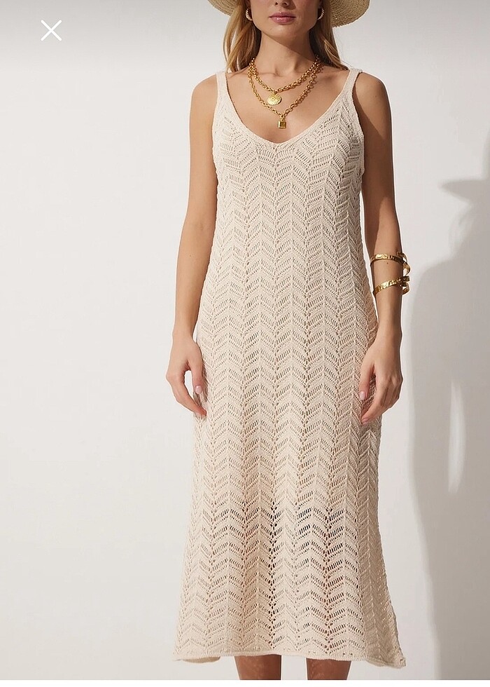 Ajurlu krem yazlık elbise