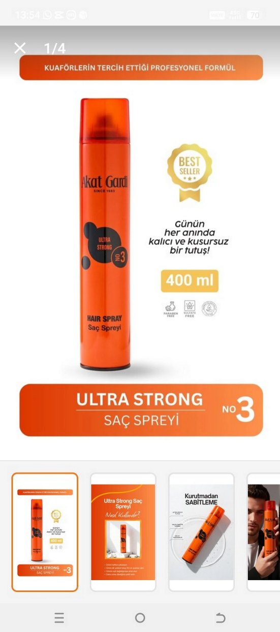 Akat Gardi Ultra Strong saç spreyi, kurutmadan kalıcı ve kusursuz sabitleme sağlar. 400ml sprey kutusunda, paraben ve hayvan testi içermez. ♂️ sıfır ürün