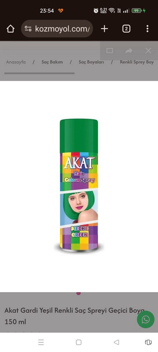 AKAT Yeşil Geçici Sprey Saç Boyası