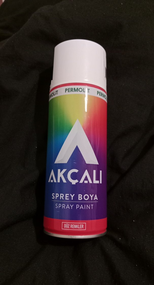 Akçalı sprey boya, çeşitli yüzeyler için açık tonlarda çok renkli bir kaplama sunar. Kutusu canlı degrade tasarımlıdır.