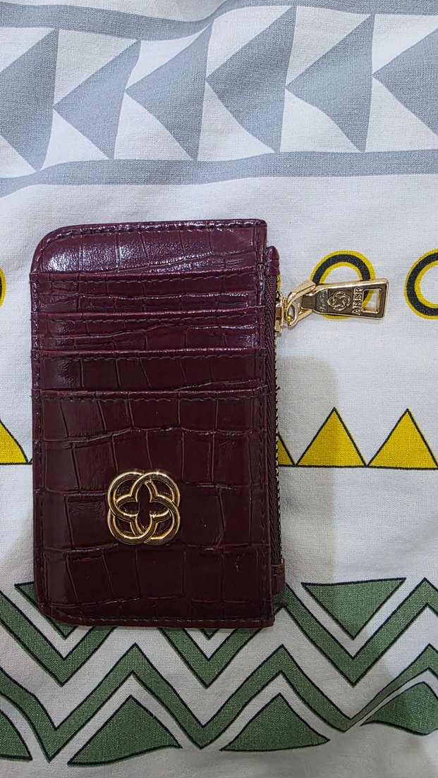 Bordo renkli, yılan derisi desenli parlak deri kadın cüzdanı, fermuarlı kapanışa sahiptir. Paris sokak modasını yansıtan kullanışlı günlük cüzdan. defosu yoktur