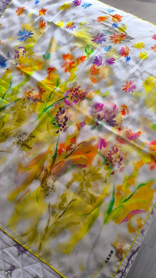 ipek eşarptır. birkaç yerde iğne izi var sadece fotoğrafda görünüyor.