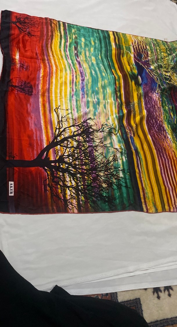 Az kullanılmış aker marka eşarp flor olarak da kullanılabilir parmağımla işaret ettiğim yerde kendi renklerinden küçük yeşil bir çizgi var fakat kullanıma engel değildir Defoe olarak orayı yazıyorum o yüzden fiyatına uygun yazıyorum