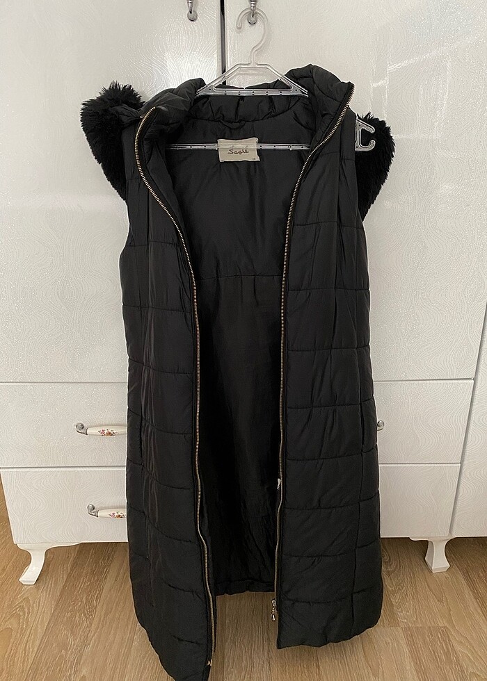 Aker mağazasından alınmıştır yeni gibidir, kürk kısmı için kaz tüyü demişti satan kadın. Kapşonu çıkıyor