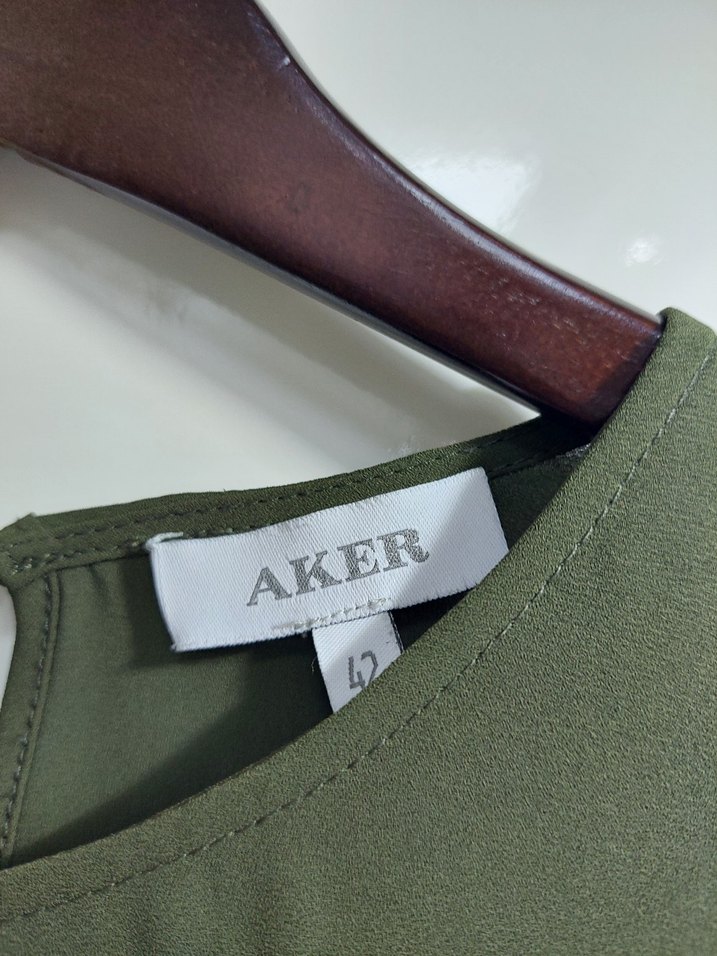 Parlak haki renkte, baskılı desenli ve AKER etiketli mutfak önlüğü. Mutfakta şıklık ve işlevsellik sunar.