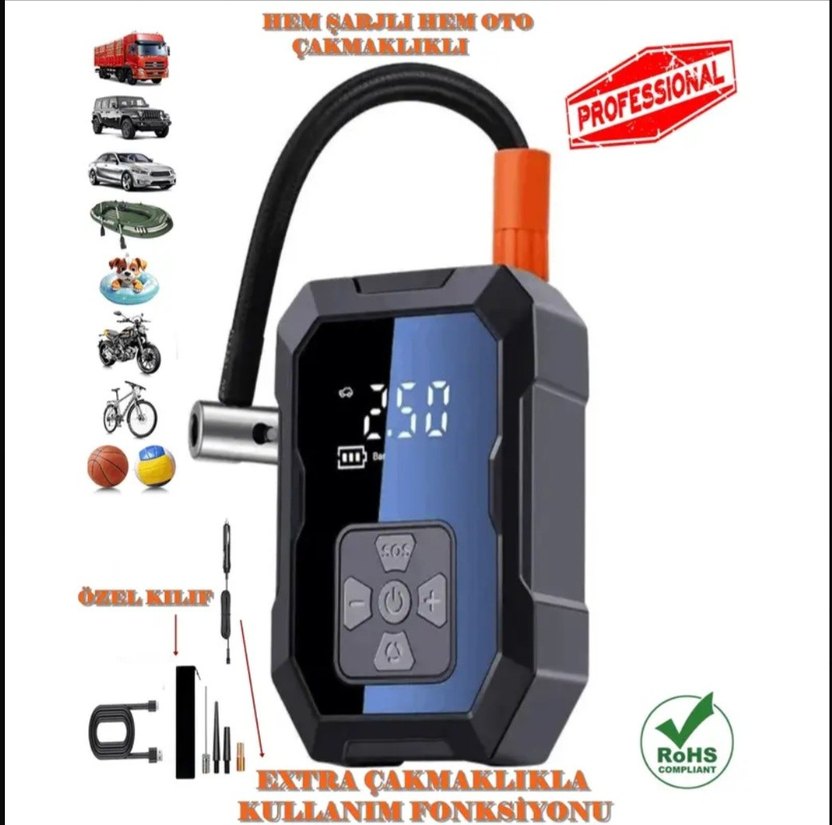 HAVASI İNMİŞ LASTİKLER SÜRÜŞ KEYFİNİZİ BOZMASIN ! EKSTRA POWERBANK YANINIZDA OLARAK KULLANIN... CEP TELEFONUNUZ TABLET, Vb. ŞARJ EDEBİLİRSİNİZ... Ürün Özellikleri : Ürün Tipi: Araba Lastik Şişirme Pompası Dijital Hava Kompresörü BASINÇ:150PSİ Güç Modu: USB Şarjı ve 12V Çakmaklık Çalışma Gerilimi: <36V Motor Gücü: 120W Ekstra Kullanım: PowerBank Olarak Kullanılır Malzeme Türü: ABS Şarj Edilebilir Pil: Lityum Pil-18650 Serisi Şarj Batarya mAh: (4000mAh) Kablosuz Batarya Volt: 7.4V Bağlantı Türü: USB Type-C ve 12V Çakmaklık Özel Özellikler: Dijital Gösterge, Taşınabilir Ürün Boyutu: 16 cm/6,3 inç * 8,2 cm/3,23 inç * 4,5 cm/1,77 inç Ürün Rengi: Siyah Kutu İçeriği: 1x Dijital Araç Şişirme Pompası Ve Aksesuarları