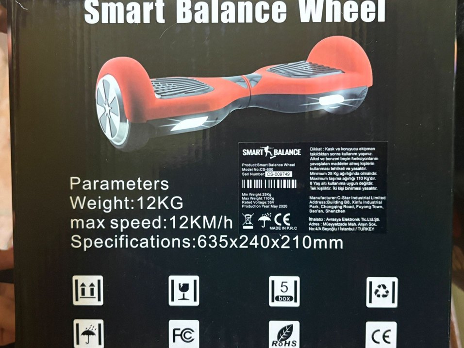 Akıllı denge scooter, 12 km/s hız ve 12 kg ağırlığındadır. Ölçüleri 635x240x210 mm. Sıfır Ayarında sadece bir kaç defa kullanılmıştır.