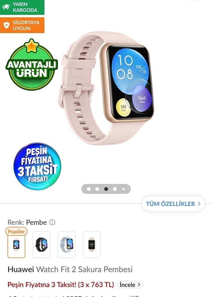 Ürünü bi iki ay kullandım saat takmayı sevmediğim için satıyorum. Akıllı saat huawei watch fit 2 sakura pembesi